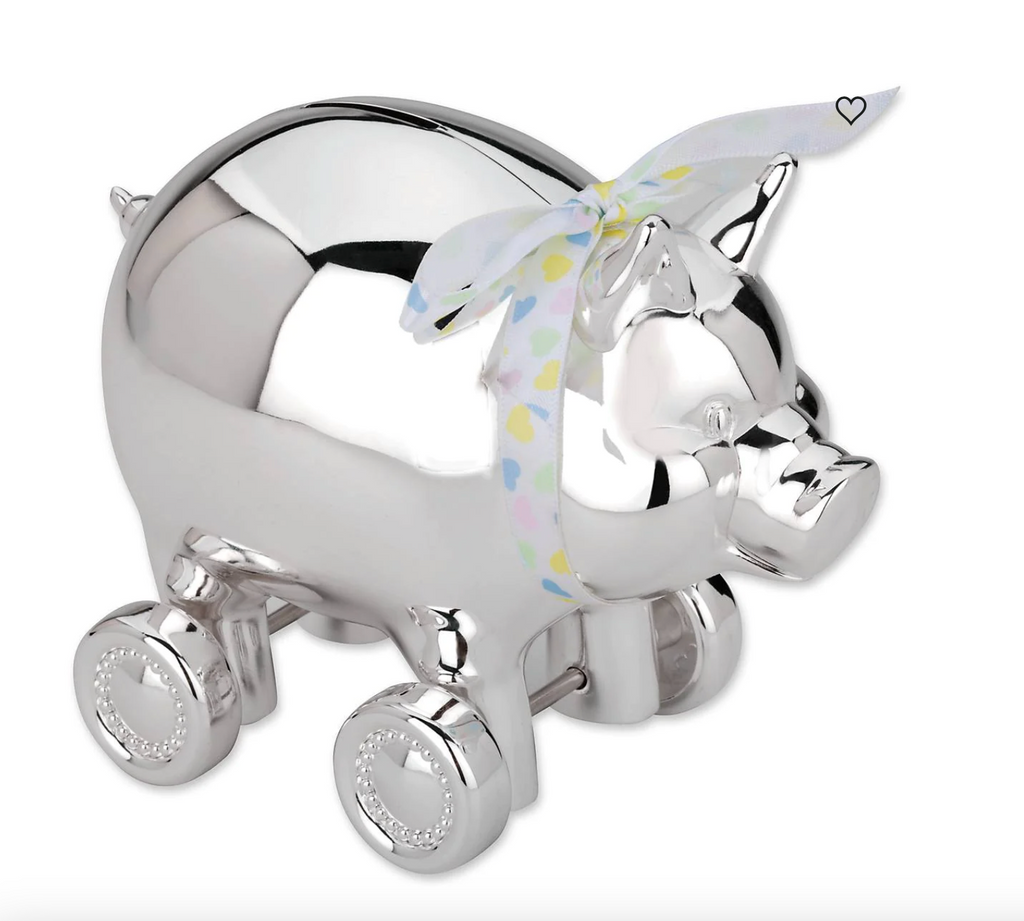 Reed & Barton Piggy with Wheels Silverplate Bank